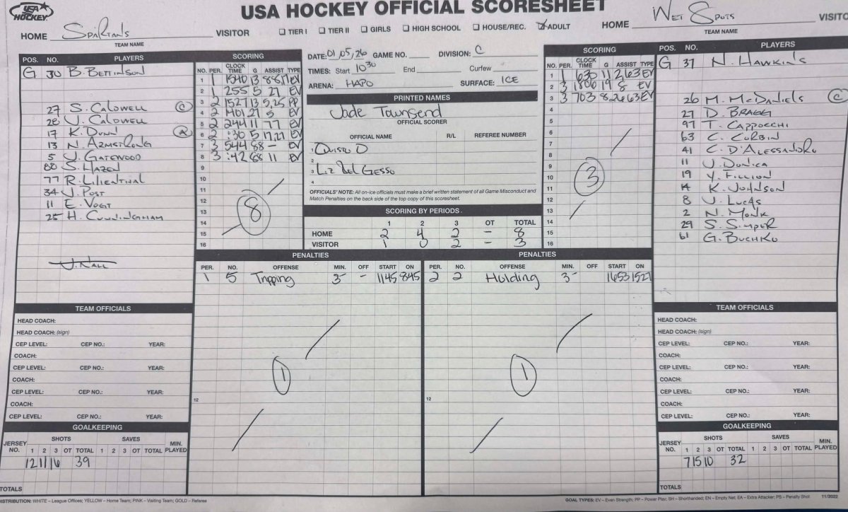 2026-01-05 10:30 PM Spartans The Wet Spots Hapo Ice Pavillion Jade Townsend 8 - 3