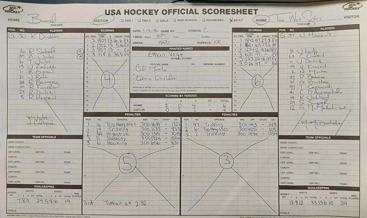 2026-01-12 10:30 PM The Wet Spots Bummers Hapo Ice Pavillion Ethan Vogt 6 - 4