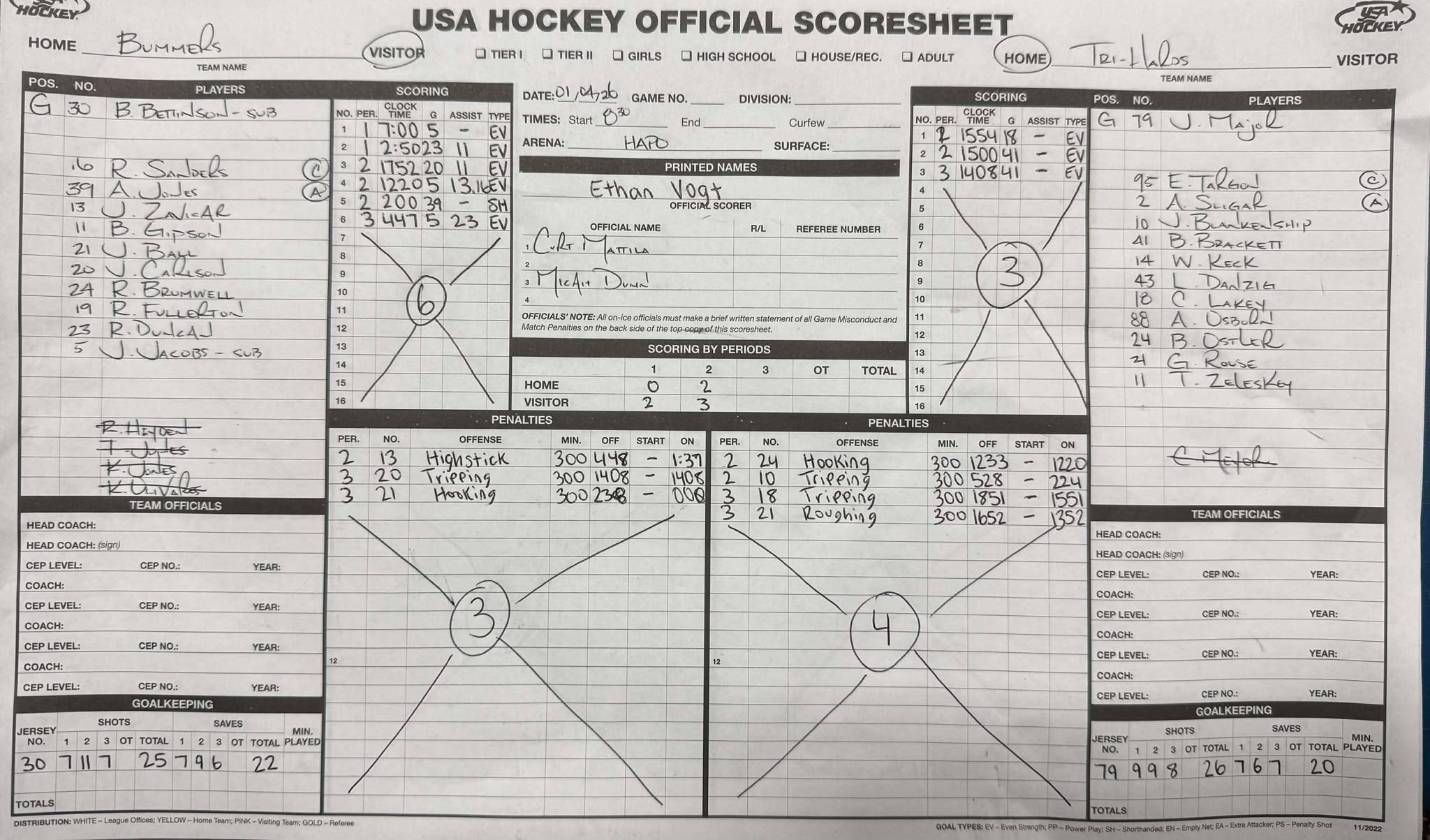 Game is Sunday!Tri-Hards Bummers Hapo Ice Pavillion Ethan Vogt 3 - 6