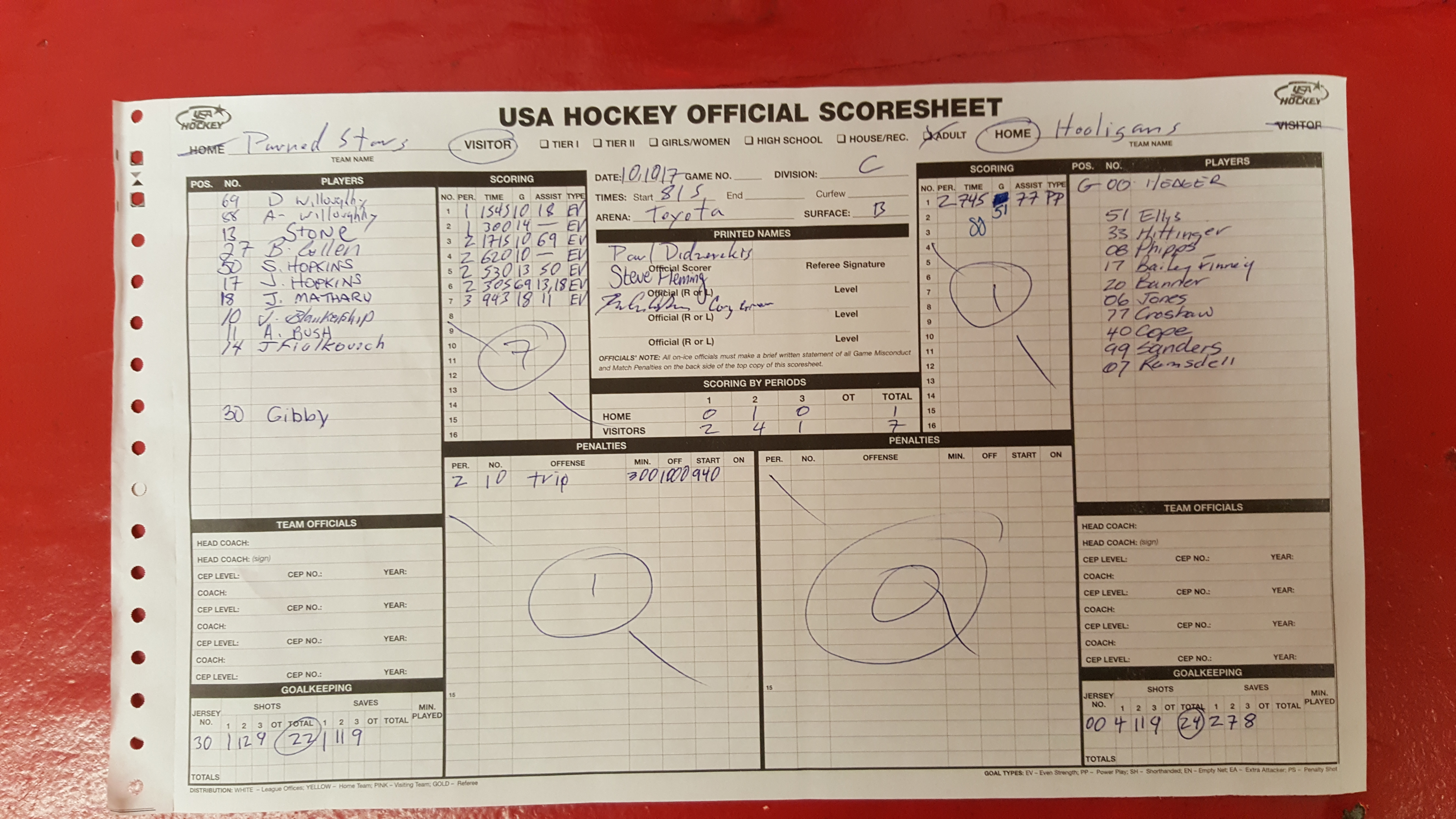 2017-10-17 08:15 PM Hooligans FARGIN ICEHOLES Toyota Arena Pawned Stars C 6 - 7 SO