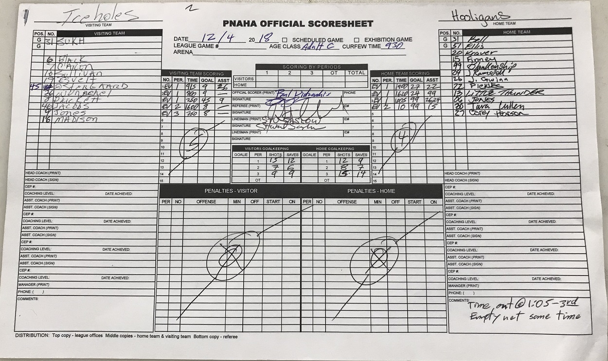 Game is Sunday!Hooligans FARGIN ICEHOLES Toyota Arena Robyn Sanders N/A Championship 2018-12-18 08:15 PM Ducks Pawned Stars Toyota Arena TBD N/A Consolation 2018-12-18 09:45 PM Nailers Hooligans Toyota Arena TBD N/A - 2018 Summer Adult C League Playoffs - Session #1