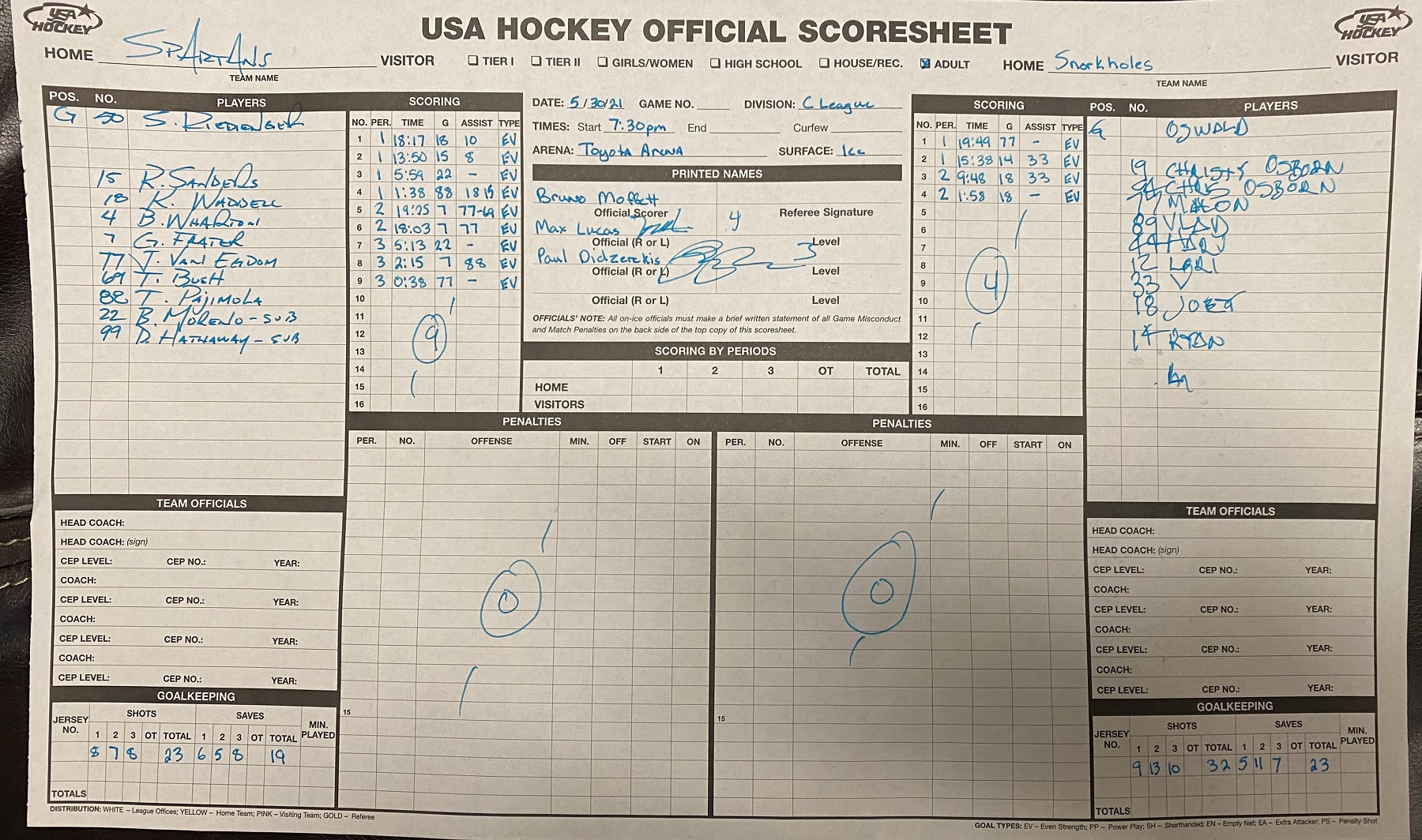 2021-05-18 09:00 PM SnorkHoles HoDags Toyota Arena Robyn Sanders 4 - 3 SO