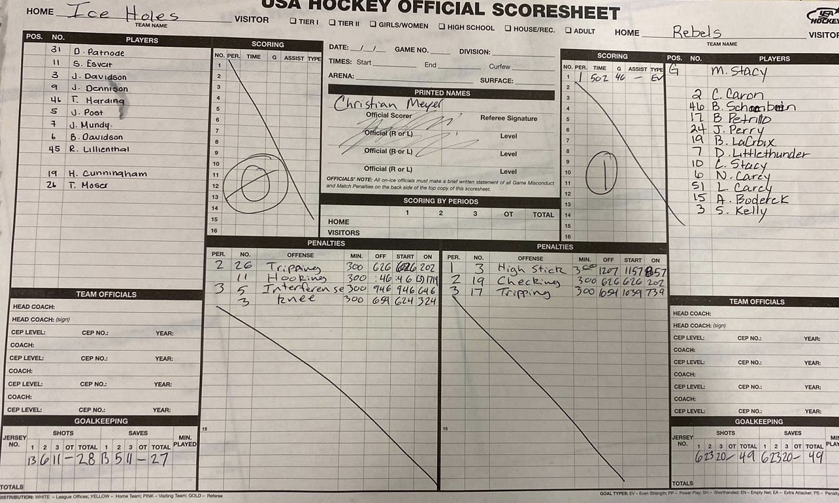 Champs: Chilly Willys6 3 1 0 13 10 33 32 Rebels 5 2 3 0 13 10 26 17 Pawned Stars Red 6 4 0 0 12 10 36 40 FARGIN ICEHOLES 5 5 0 0 10 10 41 36 Lumberjacks 5 5 0 0 10 10 34 38 Spartans 3 6 1 0 7 10 40 47 Date Home Team Away Team Location Scoring/Clock Results 2022-09-20 08:15 PM Chilly Willys Rebels Toyota Arena Not Assigned Yet 3 - 2