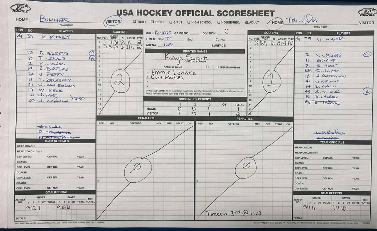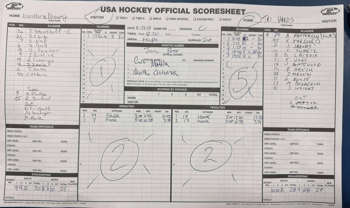 Consolation 2025-08-25 08:30 PM Tri-Hards Iron Horse Brewery Hapo Ice Pavillion TBD 5 - 1