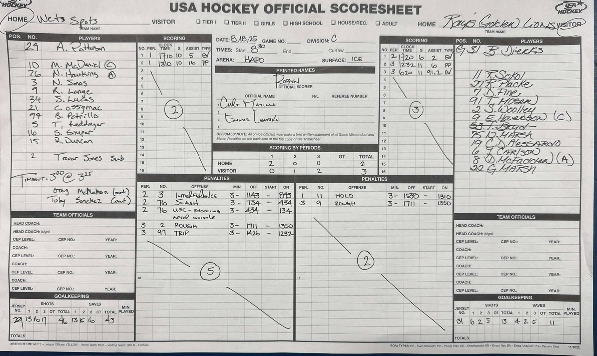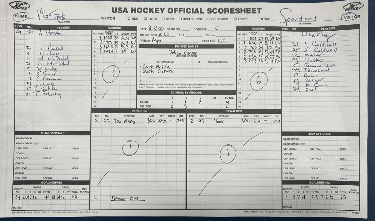 2025-08-25 10:00 PM The Wet Spots Spartans Hapo Ice Pavillion TBD 4 - 6