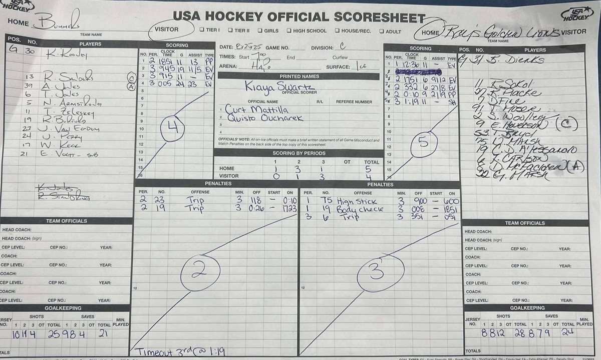 Champs: Ray's Golden Lion2 0 0 0 4 2 8 6 Bummers 1 1 0 0 2 2 6 6 Tri-Hards 0 1 0 0 0 1 6 3 The Wet Spots 0 1 0 0 0 1 6 9 Date Home Team Away Team Location Scoring/Clock Results Consolation 2025-08-17 08:30 PM